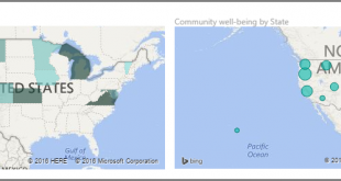 Power BI دارای دو نوع Map visualizations می باشد: یک نقشه حبابی یا bubble map که یک حباب را در یک نقطه جغرافیایی قرار می دهد و یک نقشه اشکالی یا shape map که در واقع نشانگر منطقه ای است که می خواهید visualize کنید.